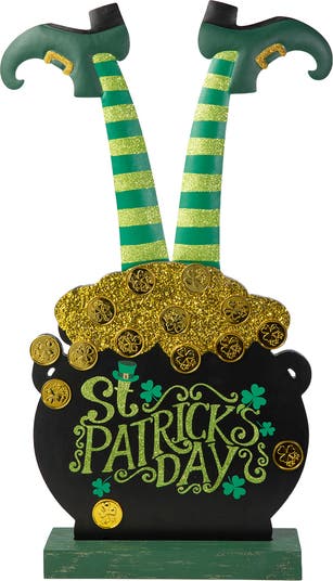 Featuring a distinctive leprechaun plunged into shimmering gold coins jar, with only its legs visible, and adorned with the words St. Patrick's Day, it intensifies the festive ambiance of your celebrations.