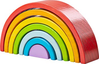 The play possibilities are endless with this versatile, sturdy wooden Rainbow Stacking Toy (Small), with no guidelines or rules, it is a fantastic Montessori toy.With these stacking blocks, little hands can assemble a variety of shapes and objects while learning all about different sizes and colours.Made from solid wood and coloured with non-toxic paints. Once playtime is over, this Rainbow Stacking Toy makes a fun decoration for your little ones bedroom or nursery.