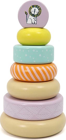 Wooden Stacking Toys, 6 Wooden Rings, 1 Lion Crown On Top