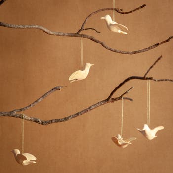 The Wooden Sunbird or Dove Ornament is hand carved from rustic eucalyptus wood, sustainably sourced to ensure an elegant and eco-friendly touch for the holiday season. Its delicate design complements the festive atmosphere of the season and will be sure to make a lasting impression. An organic set that touches on the nostalgic feel of old world décor, but still feels fresh and modern in its conception.