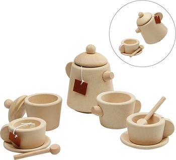 Kids can host all of their friends, family and stuffed animals at a make-believe tea party with this wooden set.