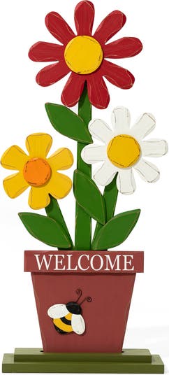 This stylish and elegant porch decor inspired by a pot of blooming flowers, brings a breath of spring. It featured with pop bright color palette, handmade details, a cute bee embellishment, and a WELCOME sign that not only looks very natural, charming and interesting but also can add an appeal of festive cheer, which is a perfect choice to highlight your porch, garden, patio or any other living space.