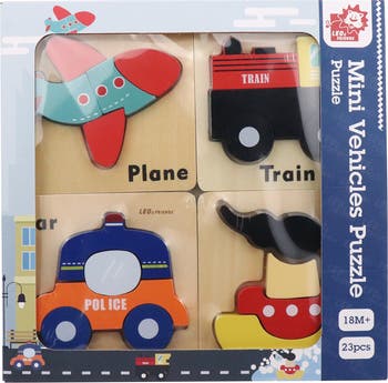 PRODUCT DESCRIPTION: Introducing the Ultimate Vehicle Puzzle Wooden Kit, by Leo & Friends. VEHICLE FUN, PACKED INTO PUZZLES Kids love learning about cars, buses, trains, and planes. That's why our vehicle themed puzzle kit will satisfy both of their cravings while also promoting their personal hand-eye coordination and development. THE FUN WAY TO LEARN AND DEVELOP Watch your child learn about creative play, problem solving, dexterity, and cognitive recall every time they sit down to play with their educational toy. Its more beneficial to their development than handing them a phone screen, which does all of the imagination for them. It will also enhance concentration and promote puzzle-solving capabilities. Imagination is a critical part of any child's personal development. 23 DIFFERENT PIECES, 4 UNIQUE PUZZLES Watch your child learn more and more about identifying vehicles and putting pieces together in a way that works. This toddler jigsaw puzzle will have them absolutely obsessed from the moment they first use it. WE CARE ABOUT YOUR SAFETY Non-toxic, sustainable wood and water-based paint were used in the making of this product. Your safety is of the utmost importance to us.
