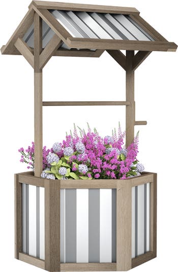 Outsunny Wooden Wishing Well Planter, Main, color, Light Gray