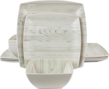 Woodgrain 12 Piece Melamine Dinnerware Set