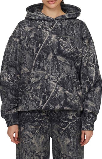 Embrace style with the Woodland Blackout Camo Relaxed Hoodie. Designed for women, this soft hoodie features a relaxed fit and an all over camo print. Perfect for casual outings or lounging at home, its cozy fabric and sleek puff print logo ensures you stay snug and chic all day long. Elevate your wardrobe with this timeless piece!