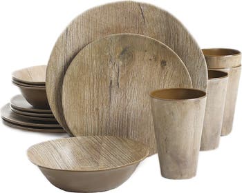 Woodlands 16 Piece Melamine Wood Grain Decal Dinnerware Set