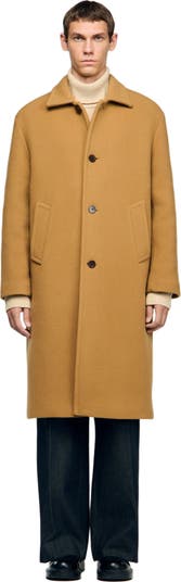 Casual wool and cashmere coat with lined interior, featuring long sleeves, wing collar and button fastening.