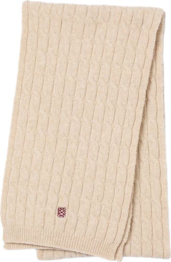 Long twisted wool and cashmere scarf with contrasting signature embroidery.