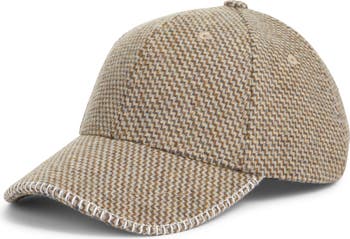 A blanket-stitch wool blend updates a classic six-panel cap with a heritage-meets-contemporary feel.