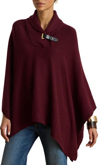 A versatile hue lends timeless polish to this classic wool-blend cape finished with the simple elegance of a faux-leather belt closure at the shawl collar and welted arm slits.