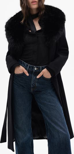 Wool Blend Coat with Removable Faux-Fur Trim
