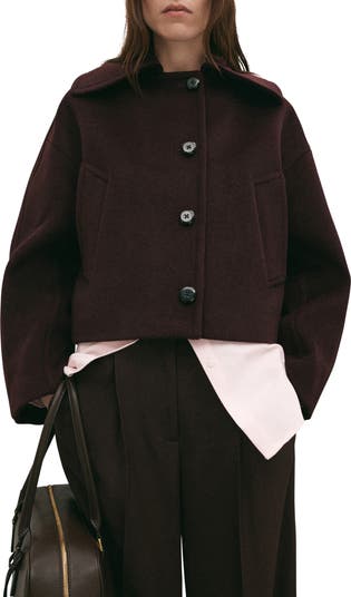 Impeccable structure and a slightly cropped length amplify the modern allure of this button-front wool-blend jacket.