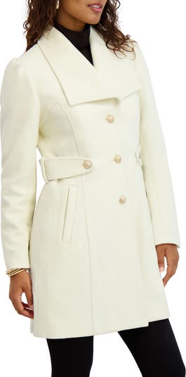 Stay in style as the temperatures cool in this softly structured coat cut from a wool-blend fabrication and fashioned in a slightly oversized silhouette.
