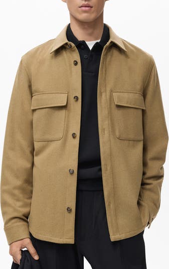 A wool blend lends warmth and texture to this workwear-style overshirt cut with a regular fit for easy layering.