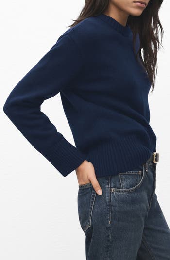 Dropped shoulders enhance the relaxed fit of this classic crewneck sweater knit from a warm wool blend.