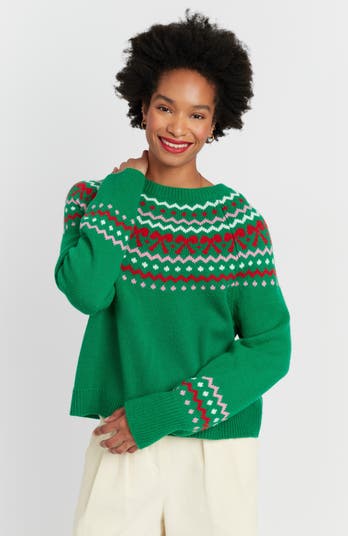 Festive, fun, and forever soft — this classic Christmas sweater is knitted from a luxurious wool and cashmere blend. The classic cream base is framed by a traditional Fair Isle yoke in red, green, and pink for a cheerful pop of color.