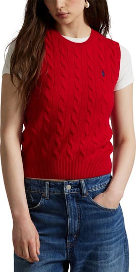 Cashmere-softened wool offers season-spanning warmth in this cable-knit sweater vest detailed with Ralph Lauren's embroidered polo rider—an instant icon since its '71 debut.