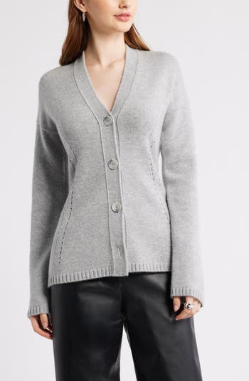 Dainty pointelle stitches adorn the front of this luxuriously soft cardigan made of wool and cashmere.