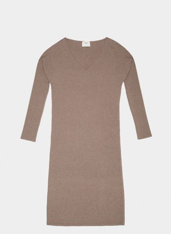 Crafted from a tactile mix of wool and cashmere, this knitted dress in beige features a defined V-neckline and side slits.