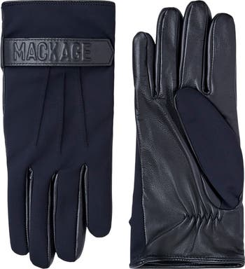 A stretchy scuba knit perfects the fit of these leather-palm gloves that keep your hands toasty warm with a luxe lining of wool and cashmere.