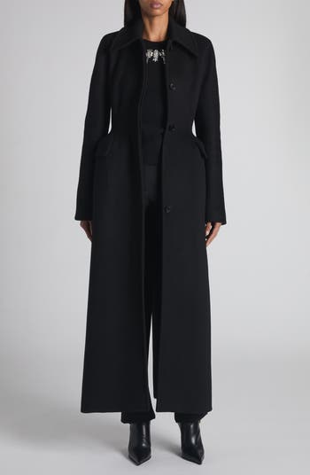 In true McQueen tradition, Seán McGirr marries gothic romance and Victorian glamour to alluring effect in this wool-cashmere longline coat.