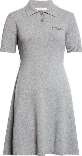 Collegiate couture at it's most comfortable, a polo minidress knit from cashmere-enriched wool is styled with a back kick pleat and embroidered at the chest with varsity-typeface branding.