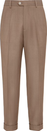 - Zip closure with button, metal hook and backing buttonSlanted front pocketsDouble pleatBack welt pocketsCuffed hemLeisure fit: the rise and seat are soft and the proportions of the leg are tapered