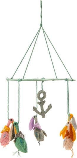 - Mobile features handcrafted wool felt pelicans in varying colors, and anchor
