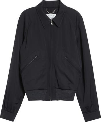 This sporty jacket reinterprets a wardrobe archetype in wool gabardine, with a tailored point collar and zipped welt pockets cut into curved seams for definition. Ribbed trim at the hem offers a play of structure and softness.