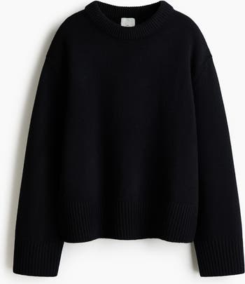Jumper in wool with a chunky, ribbed crew neck, dropped shoulders and wide ribbing at the cuffs and hem.