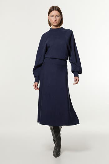 This Karen Millen knit midi dress embodies refined daywear with its contemporary rounded sleeve detail and flattering silhouette. The textured knit fabric drapes beautifully whilst maintaining structure, perfect for those who appreciate expert craftsmanship in everyday pieces. Style with gold statement earrings for a touch of understated glamour, or pair with a tailored blazer and ankle boots for family gatherings.