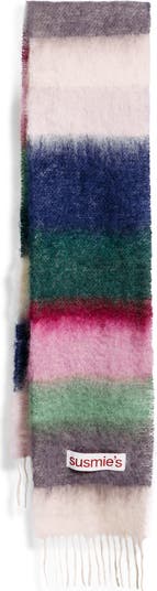 Brighten up brisk days with this limited-edition fringe scarf knit from a delightfully fuzzy wool-mohair blend.