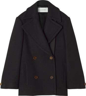 This peacoat is crafted from Australian virgin wool, an elegant and timeless fabric. It embodies the vision of the Maison Lanvin and its passion for traditional tailoring. Featuring a loose, short fit, this peacoat pairs perfectly with a daytime outfit.