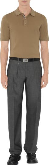A polo shirt in lightweight wool, cut to a slim fit. The style is subtly detailed with a Burberry Check trim at the placket.||Button placket|Rib-knit trims