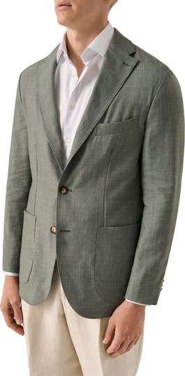 This deconstructed blazer is crafted from a refined wool, silk and linen blend sourced from the renowned Italian mill Reda. The jacket offers a lightweight, breathable feel with lining only in the sleeves for easy drape. The three-roll-two button front allows the lapel to roll down when the top button is left undone, providing a relaxed yet polished look. Designed for a natural, elegant fit with soft shoulders and a slightly tapered waist, this jacket is ideal for smart casual occasions.