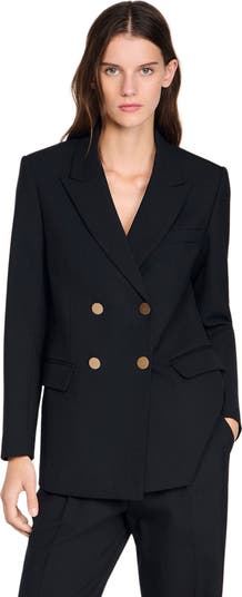 Slim-fit suit jacket in virgin wool, featuring a lapel collar, long sleeves and a double-breasted fastening.