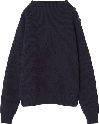 The ribbed knit of this sweater features a pearled texture and a diamond pattern reminiscent of Jeanne Lanvin's taste for geometric shapes. The button collar and straight cut make it the perfect design for casual wear.