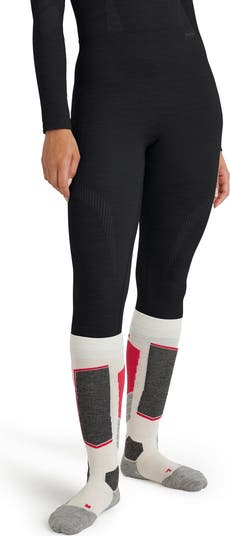 Thermo-regulated 3/4 length sports tights, to wear by themselves or as a baselayer, in a sustainable blend of mulesing-free merino wool and recycled polyamide; ideal protection in winter and cold to very cold outdoor temperatures; designer logo on waist.