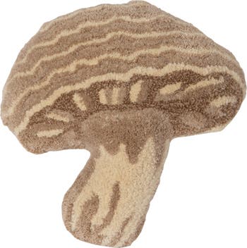 - A charming mushroom-shaped pillow in cream, beige, and brown hues