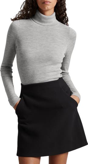 Layer or wear alone this fine-gauge turtleneck knit from a heathery wool mélange.