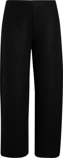 Strike a modern-look silhouette in these wide-leg pants fashioned from wool jersey and styled with a flat front.
