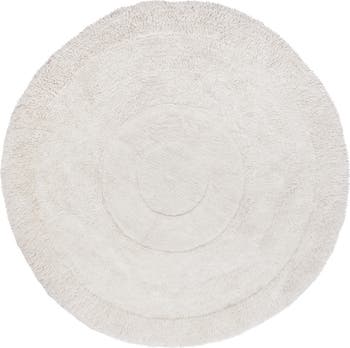 Mixed textures in concentric circles distinguish a versatile round rug made of wool and recycled cotton that stays soft and washes easily in your machine.