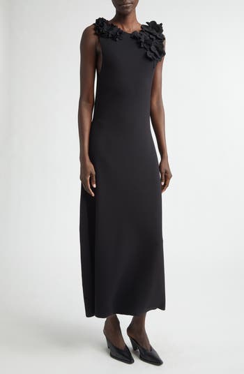 Joseph Altuzarra keeps the silhouette of this sleeveless sweater-dress strikingly simple, allowing the dimensional floral appliqués framing the neckline to make maximum impact.