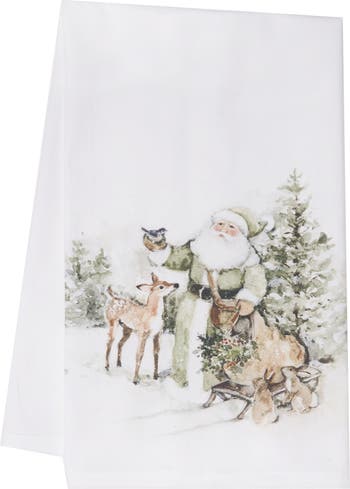 Bring a touch of holiday magic to any kitchen with the Woodland Santa & Animals Towel, featuring enchanting artwork from Susan Winget. This printed flour sack towel showcases a beautifully painted scene of Santa in a serene woodland setting, surrounded by adorable deer and rabbits. Santa, dressed in a sage-hued coat and hat, seamlessly complements the winter landscape and carries a sack brimming with winter foliage and berries. Perfect for adding festive charm to any kitchen or as a delightful gift for loved ones, this towel captures the joyful spirit of the season in every detail.