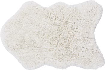 Rounded edges and fluffy wool pile imitate a sheepskin silhouette for this washable rug that adds a cozy-cabin vibe to any room.