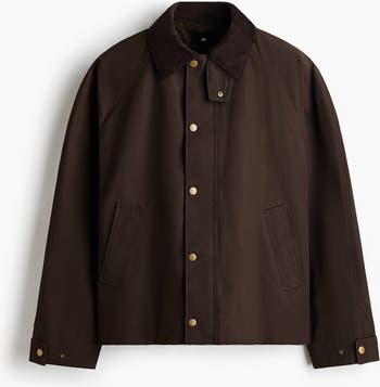 Workwear jacket in woven fabric with a turn-down collar in soft cotton corduroy. Features a throat latch, wind flap with press-studs and a zip down the front. Welt side pockets and an adjustable tab with press-studs at the cuffs. Cotton lining.
