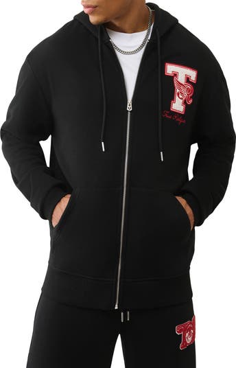 A colorful assortment of brand patches, embroidery, and printwork energizes this staple zip-front hoodie cut from an ultrasoft cotton blend.