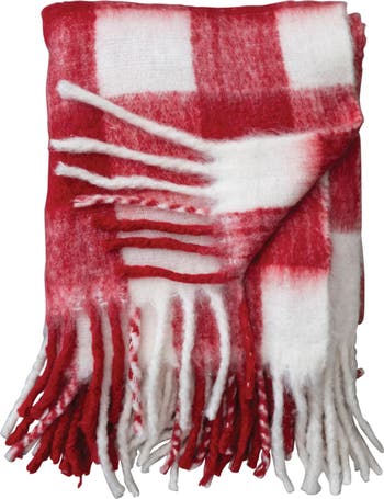 Woven Acrylic Throw with Fringe, Red and White Plaid