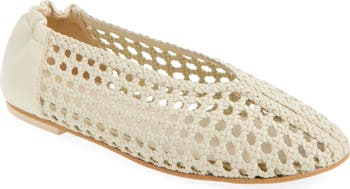 Breathable perforations and finely woven leather distinguish a Spanish-made flat featuring premium underfoot cushioning and a flexible rubber sole.